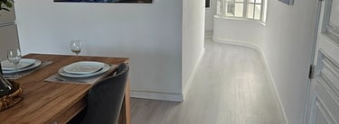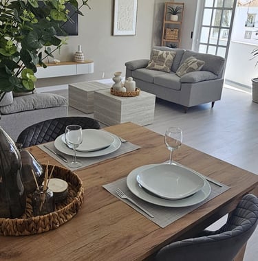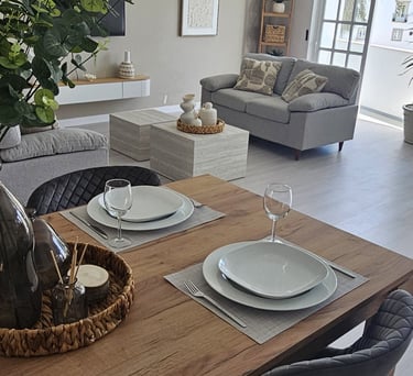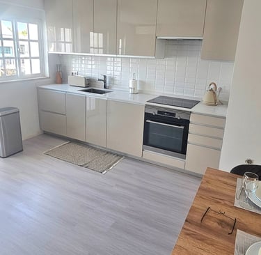 The kitchen is fully equipped with modern appliances, including a coffee machine and air frier The kitchen offers the ideal space to cook, dine, and feel right at home.